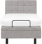 Elektrisch verstellbares Polsterbett DUKE in Hellgrau (90x200 cm) bietet Ihnen höchsten Komfort für einen erholsamen Schlaf. Mit einer kabellosen Fernbedienung können Sie die Liege- und Sitzpositionen individuell anpassen. Das Bett verfügt über eine einprogrammierte TV/PC-Position und ermöglicht es Ihnen, Ihre bevorzugte Einstellung auf Knopfdruck zu speichern. Die hochwertige Leinenoptik und die verstellbaren Kopf- und Fußteile sorgen für eine stilvolle und funktionale Ergänzung Ihres Schlafzimmers.