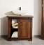 Entdecken Sie den Waschbeckenunterschrank "Bayamo", gefertigt aus massivem, gewachstem und lackiertem Mangoholz. Mit einer Breite von 68 cm, einer Höhe von 64 cm und einer Tiefe von 35 cm bietet er großzügigen Stauraum. Der kolonialfarbige Braunton und die antik-schwarzen Eisenbeschläge verleihen dem Unterschrank einen eleganten Vintage-Look. Er wird montiert geliefert und ist sofort einsatzbereit.