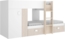 Das Dmora Schlafzimmer Cevedale bietet eine praktische Etagenbettkomposition mit zwei Einzelbetten, ideal für Kinder. Mit den Abmessungen von 271 x 111 x 150 cm und einer eleganten Kombination aus Weiß und Eiche, fügt es sich harmonisch in moderne Räume ein. Der integrierte Schrank mit Kleiderstangen und zwei platzsparenden Schubladen sorgt für Ordnung. Die Montage ist reversibel, sodass Sie den Schrank nach Belieben anbringen können.