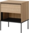 Der Nachttisch 1S Visso VI-10 in Eiche Linear vereint modernes Design mit praktischen Funktionen. Mit einer Breite von 51 cm, einer Höhe von 62 cm und einer Tiefe von 41 cm bietet er ausreichend Stauraum in einer eleganten Form. Der Nachttisch ist aus laminierten Spanplatten gefertigt und verfügt über ein griffloses Öffnungssystem „push to open“ sowie schwarze Metallfüße.