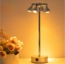 Elegante und kabellose LED Tischleuchte mit einem integrierten 3000 mAh Akku. Diese vielseitige Lampe bietet eine 4-stufige Dimmfunktion und drei Farbtemperaturen (3000 K / 4000 K / 6000 K). Der drehbare Kopf ermöglicht eine flexible Lichtausrichtung, während das IP65-zertifizierte Design sie ideal für den Innen- und Außenbereich macht. Mit einer Höhe von 31 cm ist sie perfekt für Wohnzimmer, Schlafzimmer, Bars und festliche Anlässe.