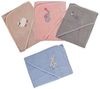 Kuscheliges Kapuzenhandtuch für Babys mit einer Größe von 80x80 cm. Hergestellt aus 100% hochwertiger Baumwolle, bietet es eine angenehme Frottee-Qualität, die sanft zur zarten Babyhaut ist. Die niedlichen Applikationen und die Kapuze sorgen dafür, dass Ihr Baby nach dem Baden warm und geschützt bleibt. Ideal für den Einsatz nach dem Schwimmbadbesuch oder dem Bad, ist dieses Handtuch ein perfektes Geschenk zur Geburt, Taufe oder zum Geburtstag.
