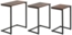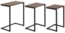 Drei C-förmige Satztische im Industriedesign, die platzsparend ineinandergeschoben werden können. Mit einem rustikalen braunen Tischblatt und einem stabilen Stahlgestell sind diese Tische vielseitig einsetzbar als Beistelltisch, Couchtisch oder Nachttisch. Die hochwertige Verarbeitung aus Spanholz und Stahl sorgt für Langlebigkeit und einfache Reinigung.