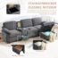 Flieks 3-Sitzer Schlafsofa ist ein elegantes Ecksofa in Dunkelgrau, das Komfort und Funktionalität vereint. Mit einem hochwertigen Cordbezug und einer Kombination aus hochdichtem Schaumstoff und Memory Foam bietet es optimalen Sitzkomfort. Ausgestattet mit einem USB-C-Anschluss, praktischen Seitentaschen und einem flexiblen Stauraumhocker, ist es ideal für moderne Haushalte. Die stabile Konstruktion sorgt für Langlebigkeit und hohe Tragfähigkeit.