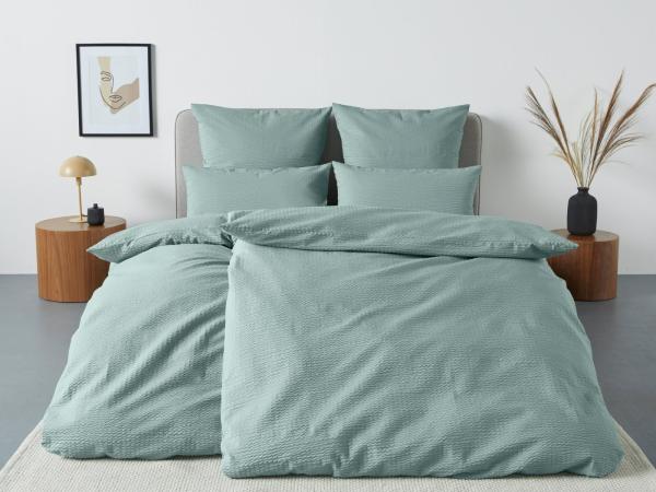 andas Bettwäsche Sari2 in Gr. 135x200 oder 155x220 cm, Seersucker, 2 teilig, aus Baumwolle, uni Bettwäsche in Seersucker Qualität ideal für Sommer
