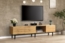 Moderner TV-Schrank mit Holzmaserung und einer Kombination aus Holzfarbe und Schwarz. Mit den Maßen 175 x 31 x 41 cm bietet er viel Stauraum für Ihre Unterhaltungselektronik. Die integrierte 7-Farben LED-Beleuchtung sorgt für eine individuelle Atmosphäre in Ihrem Wohnzimmer. Die Flügeltüren mit Rückprallvorrichtung ermöglichen ein müheloses Öffnen, während die hochwertigen MDF-Platten Stabilität und eine Tragfähigkeit von bis zu 50 kg gewährleisten.