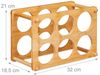 Weinregal für 6 Flaschen aus Bambus. Dieses elegante Regal bietet eine fachgerechte liegende Lagerung Ihrer Weinflaschen, sodass die Korken nicht austrocknen. Mit einem Gewicht von nur 0,66 kg ist es leicht und handlich. Das natürliche Design fügt sich harmonisch in jede Umgebung ein, sei es in der Küche oder im Wohnzimmer.