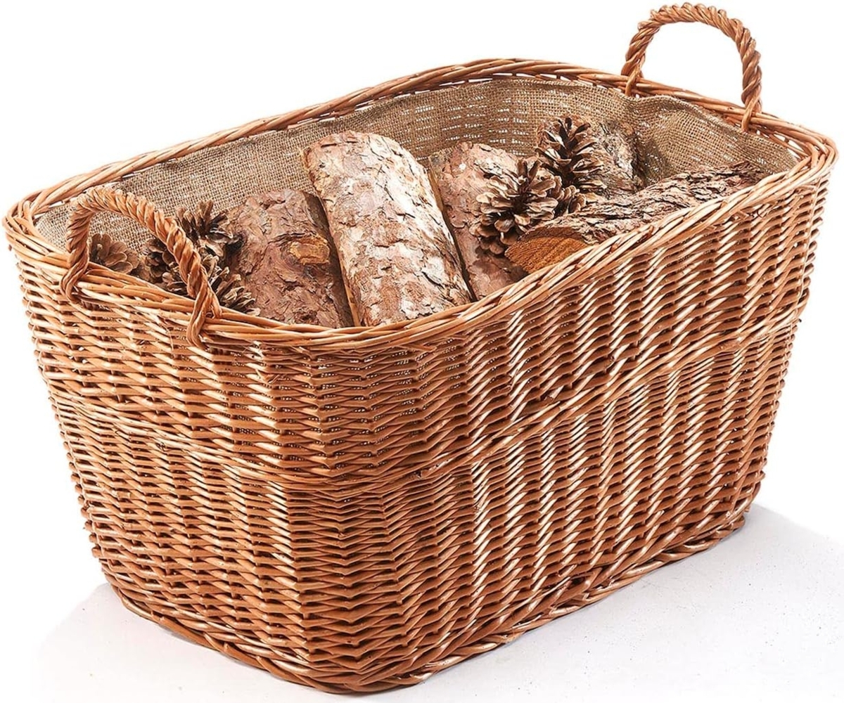 Kobolo Kaminholzkorb Holzkorb eckig gekochte Weide Leinen Gr 2