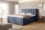 Veros 160x200, Boxspring Bett in Dunkelblau bietet Ihnen die Möglichkeit, den Komfort Ihrer Nachtruhe individuell zu steuern. Mit einem motorisch verstellbaren Rahmen können Sie Kopf- und Fußteil bequem per Fernbedienung anpassen. Das Bett besteht aus zwei Hauptmatratzen (Bonel und Pocket) sowie einer Topper-Auflage, die zusätzlichen Komfort und Schutz bietet. Der abnehmbare Silk-Bezug der Topper-Matratze ist waschmaschinengeeignet. Die gepolsterte Rückenlehne und die schwarzen Beine machen das Bett zu einem stilvollen Möbelstück.