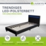 Das gemütliche Polsterbett Verona (schwarz) mit LED-Beleuchtung und Lattenrost ist der optimale Erholungsort für guten und gesunden Schlaf. Mit der 90 × 200 cm großen Liegefläche bietet das bequeme Einzelbett Kindern, Teenagern wie auch alleinstehenden Erwachsenen reichlich Platz. Der schlichte Bezug verleiht dem Kunstlederbett eine moderne Optik, die sich nahtlos in viele Kinder-, Gäste- oder Schlafzimmer einfügt. Das charmante Möbelstück eignet sich ideal zum Ausruhen und Kraft tanken.
