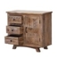 Die indische Kommode Jamira aus robustem Mangoholz vereint elegantes Design mit funktionalem Stauraum. Sie verfügt über 3 Schubladen und eine Tür, hinter der ein unterteilter Raum für zusätzlichen Platz sorgt. Die handgeschnitzten Ornamente und fantasievollen Motive verleihen der Kommode ein geheimnisvolles Aussehen. Mit ihren Maßen von ca. 85 cm Breite, 40 cm Tiefe und 77 cm Höhe ist sie ein echter Blickfang in jedem Raum. Jedes Stück ist ein handgefertigtes Unikat und wird fertig montiert geliefert.