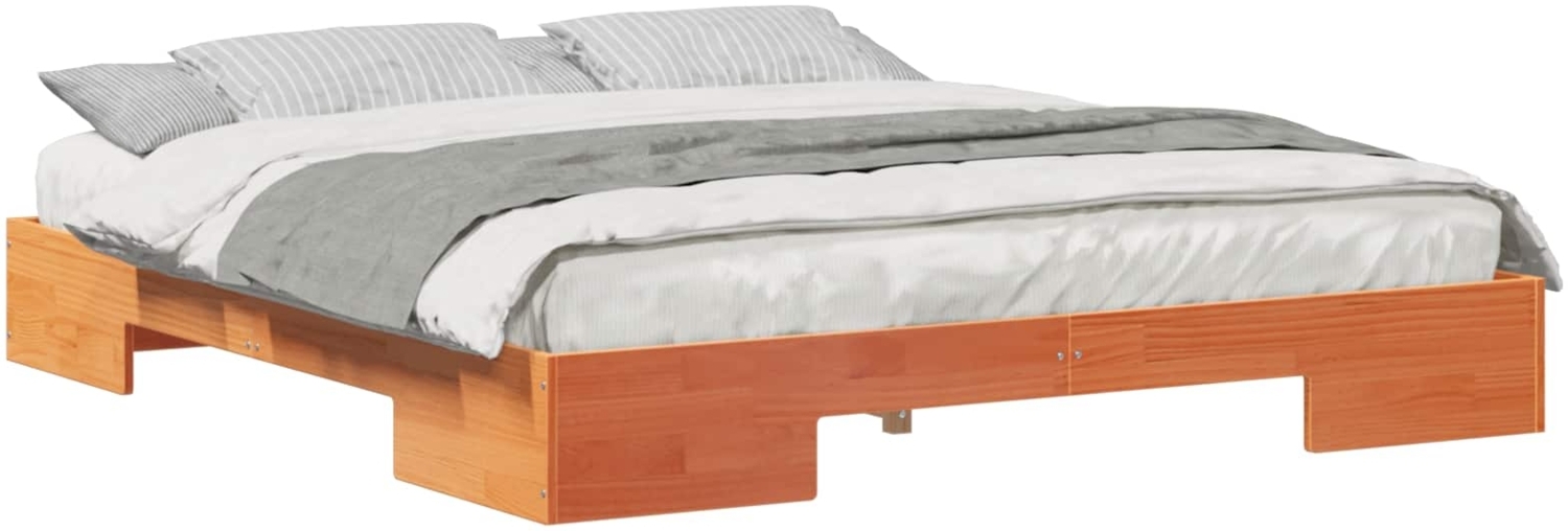 vidaXL Bodenbettgestell Braun 180 x 200 cm aus massivem Kiefernholz vereint Stil und Funktionalität. Mit seinen Gesamtabmessungen von 203,5 x 183,5 x 25 cm bietet es eine stabile und langlebige Basis für Ihre Matratze. Das moderne, undurchsichtige Design fügt sich harmonisch in verschiedene Schlafzimmerstile ein und sorgt für eine einladende Atmosphäre. Der einfache Aufbau ermöglicht eine schnelle Nutzung, während die pflegeleichte Oberfläche den Alltag erleichtert.