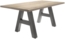 Moderner Esstisch mit A-förmigem Gestell, der durch seine geradlinige Tischplatte und den attraktiven Kontrast zwischen den unterschiedlichen Farbtönen besticht. Die pflegeleichten Oberflächen ermöglichen eine einfache Reinigung. Ideal für das Esszimmer, setzt dieser Tisch sowohl natürliche als auch modische Akzente und lässt sich individuell an Ihr Raumkonzept anpassen.