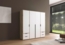 Rauch Möbel Nagata, Drehtürenschrank, Kleiderschrank, Kleiderschränke, Garderobe, 4-türig, 4 Schubladen, Farbe Weiß/Eiche Artisan, Holz, 187 x 194 x 53 cm