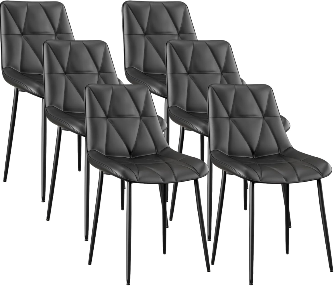 Clevich Esszimmerstühle Bis 200 kg, PU Polsterstuhl, Metallbeine, Stabil, Komfortabel, Einfache Montage, Küchenstühle 81 x 57 x 50CM (Schwarz, 6 Stück)