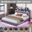 Dieses Polsterbett mit einer Liegefläche von 160x200 cm vereint klassische Schlichtheit und modernen Komfort. Der Holzrahmen mit Leinenbezug sorgt für eine stilvolle Atmosphäre, während die integrierte USB-Steckdose und die LED-Beleuchtung sowohl praktische Funktionen als auch stimmungsvolle Akzente setzen. Das gepolsterte Kopfteil bietet Stauraum und angenehme Rückenunterstützung. Mit einem Gesamtgewicht von etwa 48 kg und einer Belastbarkeit von bis zu 250 kg ist es sowohl stabil als auch langlebig.
