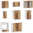 | Set-Bestandteile | 1x Spülenunterschrank, 1x Küchenunterschrank, 1x Küchenunterschrank, 1x Küchen-Hängeschrank, 1x Küchen-Hängeschrank, 1x Ofenschrank, 1x Küchen-Hängeschrank, 1x Küchen-Hängeschrank mit Glastüren |