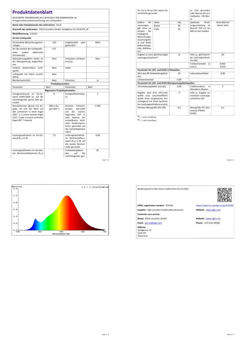 Eglo 110122 Leuchtmittel LED E27 L:14. 5cm Ø:9. 5cm dimmbar 2700K