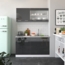 Die Vicco Singleküche in Anthrazit Hochglanz und Weiß bietet Ihnen eine moderne und funktionale Lösung für Ihre Küche. Mit einer Breite von 140 cm und einer Höhe von 81,6 cm ist sie ideal für kleinere Räume. Die Arbeitsplatte in Anthrazit und die Melaminharzbeschichtung sorgen für eine ansprechende Optik und Langlebigkeit. Die Küche ist aus 16 mm dicker Spanplatte gefertigt und wiegt 81,19 kg.