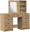vidaXL Schminktisch 3 pcs Braun 40 x 41 x 135 cm Holzwerkstoff 3334226. Dieser moderne Schminktisch vereint klare Linien mit solider Funktionalität und ist eine stilvolle Ergänzung für Ihr Schlafzimmer. Mit seiner rechteckigen Form und minimalistischen Deko passt er zu verschiedenen Einrichtungsstilen. Der Tisch bietet nicht nur eine ansprechende Optik, sondern auch praktische Funktionen für ein organisiertes Wohnen.