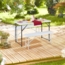 Der klappbare Campingtisch 10049599_49 ist der ideale Begleiter für Camping, Sommerfeiern und Grillabende. Mit einer großzügigen Tischplatte bietet er Platz für bis zu 6 Personen. Der Tisch lässt sich schnell aufbauen und einfach zusammenklappen, wodurch er leicht verstaut werden kann. Dank des praktischen Tragegriffs ist der Transport mühelos. Die Kombination aus Kunststofftischplatte und Stahlgestell sorgt für Stabilität und Langlebigkeit.