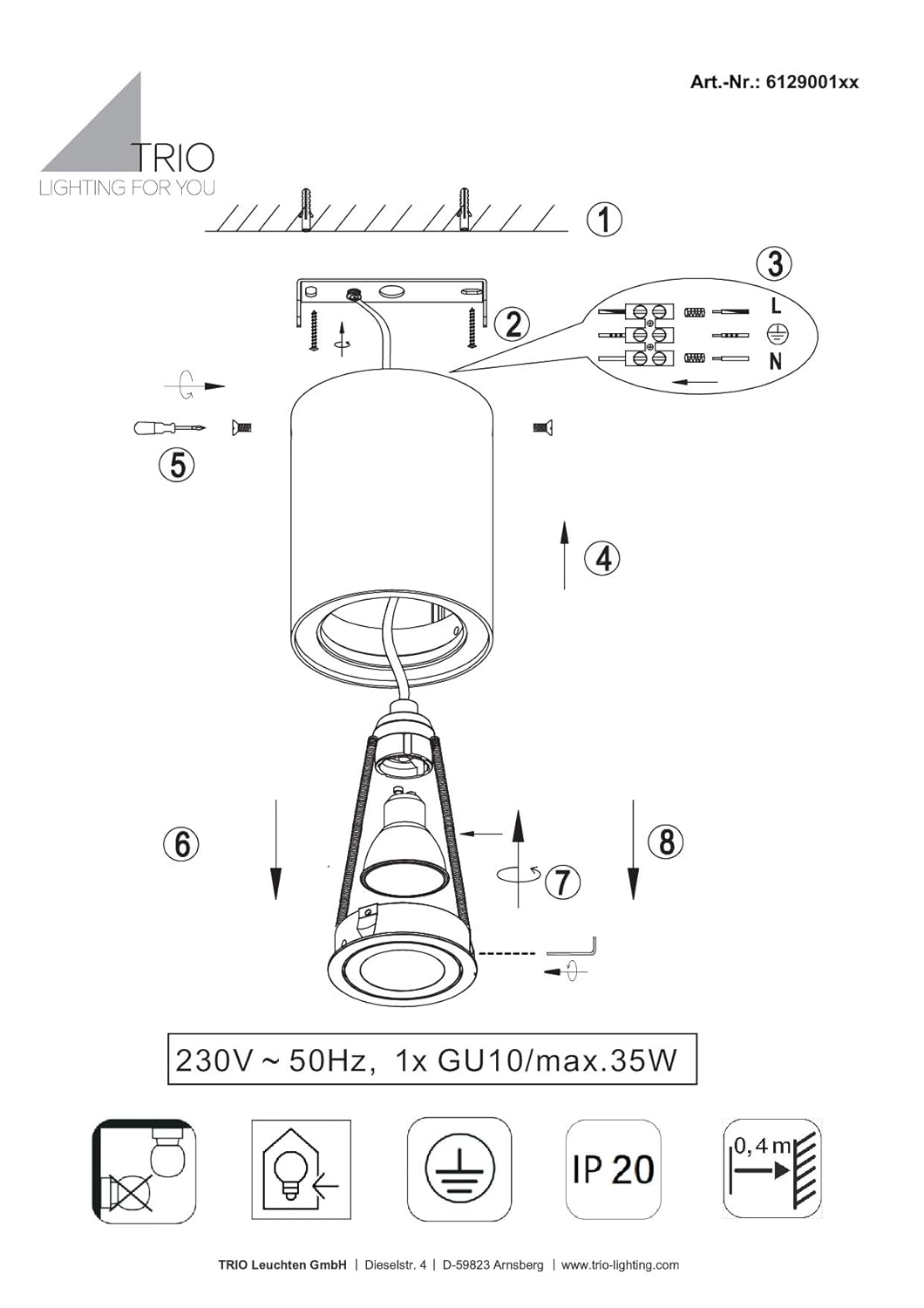 Schwenkbarer Aufbaustrahler COOKIE aus dem Hause TRIO Leuchten Diese zeitgemäße Innenleuchte verleiht jedem Wohnbereich das Gewisse etwas!Dank des Zylinder Designs aus schwarz mattem Metall ist die schwenkbare COOKIE Spotlampe schon im Hellen ein wahrer Hingucker. Die Deckenleuchte ist jedoch nicht nur optisch attraktiv, sondern überzeugt auch durch ihre vielfältigen Einsatzmöglichkeiten. Die moderne, aufbauende Bauweise der 1 flammigen Leuchte eignet sich besonders, wenn man eine optische Abhebung im Raum wünscht. Durch die schwenkbare Fassung in der Leuchte, kann man den Lichtkegel optimal einstellen. Somit setzt diese Spotleuchte Kunststücke, Bildwerke oder antike und wertvolle Vasen gekonnt in Szene. Darüber hinaus können mehrere dieser Deckenlampe für Vitrinen-, Flur-, Galerie- oder Kochinselbeleuchtung im Einsatz gebracht werden. Ob als stylishe Deckenlampe in Fluren und Dielen, als zeitgemäßer Strahler über Ihrem Esstisch in Küche oder Esszimmer, als Eyecatcher in Ihrem Wohnzimmer oder auch als Highlights in öffentlichen Bereichen, wie z.B. Büro, Geschäften oder Praxen. Auch als coole Deckenlampe für das Jugendzimmer ist diese COOKIE Leuchte die richtige Wahl. Ganz gleich, welche Art von Lichtspots Sie für Ihre Zwecke benötigen, ob Sie auf der Suche nach Wohnzimmerlampen, Flurleuchten, Küchendeckenlampen, Schlafzimmerlampen, Büroleuchten oder sonstigen Wohnraumleuchten sind, dieser universell einsetzbarer Deckenstrahler wird all Ihren Ansprüchen gewiss gerecht!* Geeignet für 1 x GU10 Leuchtmittel bis max. 35 Watt (nicht enthalten)