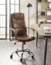 Eleganter Chefsessel WINNER in Braun aus Kunstleder, höhenverstellbar und ausgestattet mit Sicherheitsrollen. Die breite, gut gepolsterte Sitzfläche und die praktischen Armlehnen sorgen für hohen Komfort. Die integrierte Kopfstütze und die Wippfunktion unterstützen eine gesunde Sitzhaltung. Der Stuhl ist um 360° drehbar und hat lastabhängig gebremste Rollen, die beim Aufstehen aktivieren.