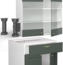 Die Vicco Singleküche in Grün-Gold Landhaus und Weiß bietet Ihnen eine stilvolle und funktionale Lösung für Ihre Küche. Mit einer großzügigen Arbeitsfläche von 140 x 60 cm und einer Höhe von 82 cm ist sie ideal für alle Kochbedürfnisse. Die Melaminharzbeschichtung sorgt für eine langlebige und pflegeleichte Oberfläche. Die Küche besteht aus stabiler Spanplatte und MDF und hat ein Gesamtgewicht von 107,49 kg.