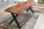 Einzigartiger Esstisch "Xanten" aus massiver Akazie mit Baumkante in nussbaum/schwarz. Mit einem stabilen X-Gestell und einer hochwertigen, 26 mm dicken Holzplatte bietet dieser Tisch eine perfekte Kombination aus Natürlichkeit und modernem Design. Die Maße betragen 220 x 100 cm, und jedes Stück ist ein Unikat mit individueller Holzmaserung.