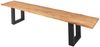 Stilvolle Baumkantenbank Enrico, 180x38 cm, Eichenholz massiv + geölt, U-Gestell Schwarz. Das atmungsaktive Eichenholz mit geölter Oberfläche betont die Maserung und verleiht einen matten Schimmer. Ein Unikat durch natürlichen Wuchs und Baumkante. Pflegeleicht und langlebig. Passt perfekt zu Industrial- und modernen Einrichtungsstilen.