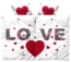 Romantische Partnerbettwäsche aus Mikrofaser im modernen Design mit großem „LOVE“-Schriftzug und Herzmotiven. Die Vorderseite zeigt ein stilvolles Karomuster, umgeben von kleinen roten Herzen. Die Kopfkissen sind mit einem großen roten Herzaufdruck und der Aufschrift „SWEET LOVE“ versehen. Die kuschelweiche Mikrofaser sorgt für angenehmen Schlafkomfort und ist pflegeleicht.