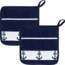 Kracht Kochschürze Topflappen "Anker" im 2er-Pack aus hochwertigem Frottier. Die attraktiven Ankermotive in der breiten Webbordüre verleihen Ihrer Küche ein maritimes Flair. Diese doppellagigen Topflappen sind bügelfrei, saugstark und langlebig. Mit praktischer Schlaufe zum Aufhängen sind sie der ideale Helfer beim Kochen.
