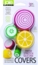 Praktisches 3er-Set Silikon-Stretchdeckel von Joie in den Farben Grün, Gelb und Lila. Diese dehnbaren Lebensmittelabdeckungen sind ideal, um die Frische von geschnittenem Gemüse und Obst, wie Zitronen, Gurken oder Zwiebeln, zu bewahren. Mit einer Größe von ca. 11,3 cm x 3 cm x 20,7 cm passen sie sich flexibel an verschiedene Behälter an.