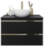 Das Lookway Badmöbel-Set ARTEMIS II vereint elegantes Design und praktische Funktionalität. Es besteht aus einem hängenden Waschbeckenunterschrank mit Soft-Close-System, einem runden LED-Spiegel und einem hochwertigen Aufsatzwaschbecken aus Sanitärkeramik. Die Materialien sind langlebig und pflegeleicht, während die goldene Leiste an der Schrankfront einen luxuriösen Akzent setzt. Ideal für moderne und klassische Badezimmer.