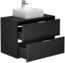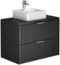 Der Waschbeckenunterschrank ZEVARA vereint modernes Design mit Funktionalität. Mit einer Breite von 80 cm, einer Höhe von 57 cm und einer Tiefe von 46 cm bietet er ausreichend Stauraum durch zwei Soft-Close-Schubladen. Die elegante geriffelte Front in Schwarz und das hochwertige MDF-Material verleihen Ihrem Badezimmer einen stilvollen Akzent. Die Waschtischplatte aus Holzspan und das Aufsatzwaschbecken aus Keramik runden das Gesamtbild ab.