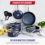 Das Kochgeschirr-Set ist aus Metall gefertigt und verfügt über eine diamantinfundierte Keramik-Antihaftbeschichtung von Blue Diamond. Diese Beschichtung ist 5-mal härter und 10-mal langlebiger als herkömmliche Beschichtungen. Die Diamanten in der Beschichtung sind zudem 4-mal leitfähiger als Kupfer, was zu einer schnelleren Erwärmung und einer leichteren Reinigung führt.