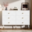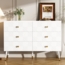 Merax 120 cm Sideboard – eine moderne 6-Schubladen-Kommode in elegantem Weiß. Mit geometrischen Mustern und diamantförmigen Griffen fügt sie sich stilvoll in Ihr Schlafzimmer, Wohnzimmer oder Flur ein. Sechs geräumige Schubladen bieten großzügigen Stauraum für Kleidung und Accessoires. Die stabilen, weiß-goldenen Metallbeine (20 cm Höhe) sorgen für optimale Stabilität und erleichtern die Reinigung. Der Aufbau gestaltet sich dank der durchdachten Konstruktion und der verständlichen Anleitung einfach.