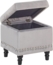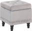 Quadratischer Pouf aus hellgrauem Samtstoff mit edler Nieten-Umrandung und gedrechselten Holzbeinen. Der Pouf bietet nicht nur einen stilvollen Akzent in jedem Raum, sondern auch praktischen Stauraum unter der Sitzfläche. Mit einer maximalen Belastung von 110 kg und einer komfortablen Polsterung ist er ideal für Flur, Salon, Schlaf-, Gäste- oder Wohnzimmer geeignet.