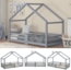 Dieses charmante Hausbett in Grau vereint kindgerechtes Design und Sicherheit. Hergestellt aus 100 % massivem Kiefernholz, bietet es eine stabile Struktur und ist mit nahezu geruchsneutraler, wasserbasierter Farbe behandelt. Der rundum geschlossene Rausfallschutz und die niedrige Bodenfreiheit von 3,5 cm sorgen für maximale Sicherheit und erleichtern das Ein- und Aussteigen. Mit 15 stabilen Lattenrosten bietet es eine gleichmäßige Unterstützung für die Wirbelsäule.