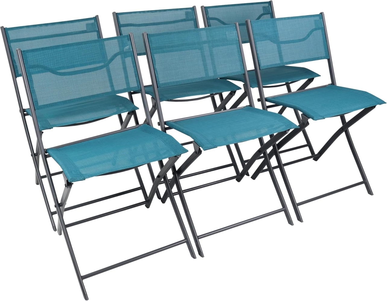 Der VCM Gartenstuhl Sumila in Türkis vereint stilvolles Design mit hohem Komfort. Mit den Maßen von 79 x 45 x 46 cm bietet er eine bequeme Sitzfläche und Rückenlehne aus atmungsaktivem Textilene, das für eine gute Belüftung sorgt. Der Stuhl ist platzsparend zusammenklappbar und verfügt über einen praktischen Griff für einfaches Verschieben und Verstauen. Das hochwertige Metallrohrgestell garantiert Langlebigkeit und Stabilität.