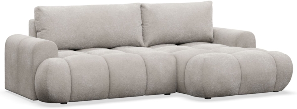 Selsey 'Ombo Mini' Ecksofa mit Schlaffunktion, Bettkasten und Bouclé-Bezug, Graubeige, rechts