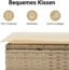 Diese Garten-Sofagarnitur ist die perfekte Ergänzung zu deinem Garten, deiner Terrasse oder deinem Innenhof. Sie bietet einen bequemen und einladenden Platz, um mit Familie und Freunden zu plaudern oder dich einfach nur zu entspannen und das Leben im Freien zu genießen. Langlebiges Material: PE-Rattan, auch als Poly Rattan bekannt, ist ein robustes, pflegeleichtes synthetisches Material, das die Optik von natürlichem Rattan aufweist. Es kennzeichnet sich durch ein geringes Eigengewicht und lässt sich einfach reinigen. Aufgrund seiner Haltbarkeit und Witterungsbeständigkeit wird es häufig bei der Herstellung von Gartenmöbeln verwendet.Bequemes Sitzerlebnis: Dieser Gartensessel mit dick gepolsterten Kissen bietet ein angenehmes Sitzgefühl.Abnehmbarer und waschbarer Bezug: Diese Sitzkissen verfügen über abnehmbare Bezüge für einfaches Waschen und Pflegen.Modulares Design: Dank des modularen Designs lassen sich die Gartenmöbel völlig flexibel und einfach umstellen, um deinen Außenbereich ganz individuell zu gestalten. Gut zu wissen:Wir empfehlen dir, deine Gartenmöbel mit einer wasserdichten Hülle zu schützen, um lange Zeit eine ansprechende Optik aufzuweisen.
