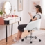 Der Yaheetech Schminkstuhl mit Samtbezug vereint Stil und Funktionalität. Mit einem eleganten cremeweißen Kunstlederbezug und einer umhüllenden Rückenlehne bietet dieser Drehstuhl hohen Sitzkomfort. Die verstellbare Sitzhöhe von 46,5 cm bis 56,6 cm und die entspannte Wippfunktion machen ihn ideal für verschiedene Körpertypen und Tischhöhen. Zudem sorgt die 360° Drehbarkeit mit 5 robusten Rollen für Flexibilität im Homeoffice.