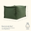 Dieser Sitzsack-Fußhocker wurde aus OEKO-TEX-zertifiziertem Olefin gefertigt, einem wasserabweisenden, UV-beständigen und schimmelbeständigen Material, das sich für Innen- und Außenbereiche eignet. Doppelnähte und ein doppelter Reißverschluss sorgen für zusätzliche Strapazierfähigkeit.