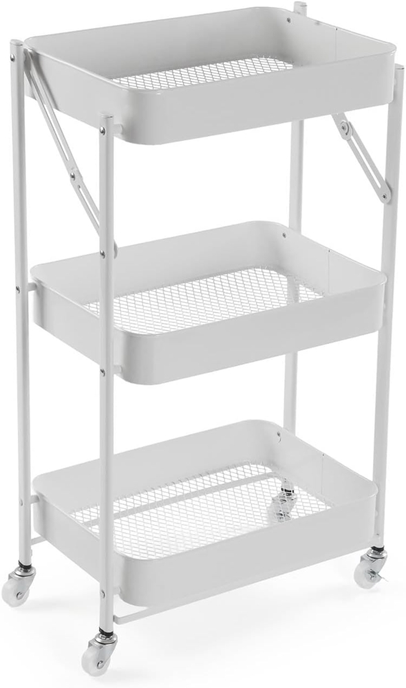 Der Versa Versa Style Klappbare Küchenwagen überzeugt durch sein modernes Design und seine Funktionalität. Mit einem stabilen Metallrahmen und praktischen Ablagen bietet er ausreichend Platz für Ihre Küchenutensilien. Dank der Schwenkräder lässt sich der Wagen mühelos bewegen. Das korrosionsgeschützte Material schützt vor Feuchtigkeit und sorgt für Langlebigkeit. Mit kompakten Maßen von 77 x 45 x 29 cm ist er vielseitig einsetzbar, sei es in der Küche, im Badezimmer oder als Regal.