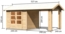 Seitlicher Giebeldachanbau mit 260 cm Breite, ideal als überdachter Sitzplatz oder zusätzlicher Stauraum. An beiden Giebelseiten anbaubar.