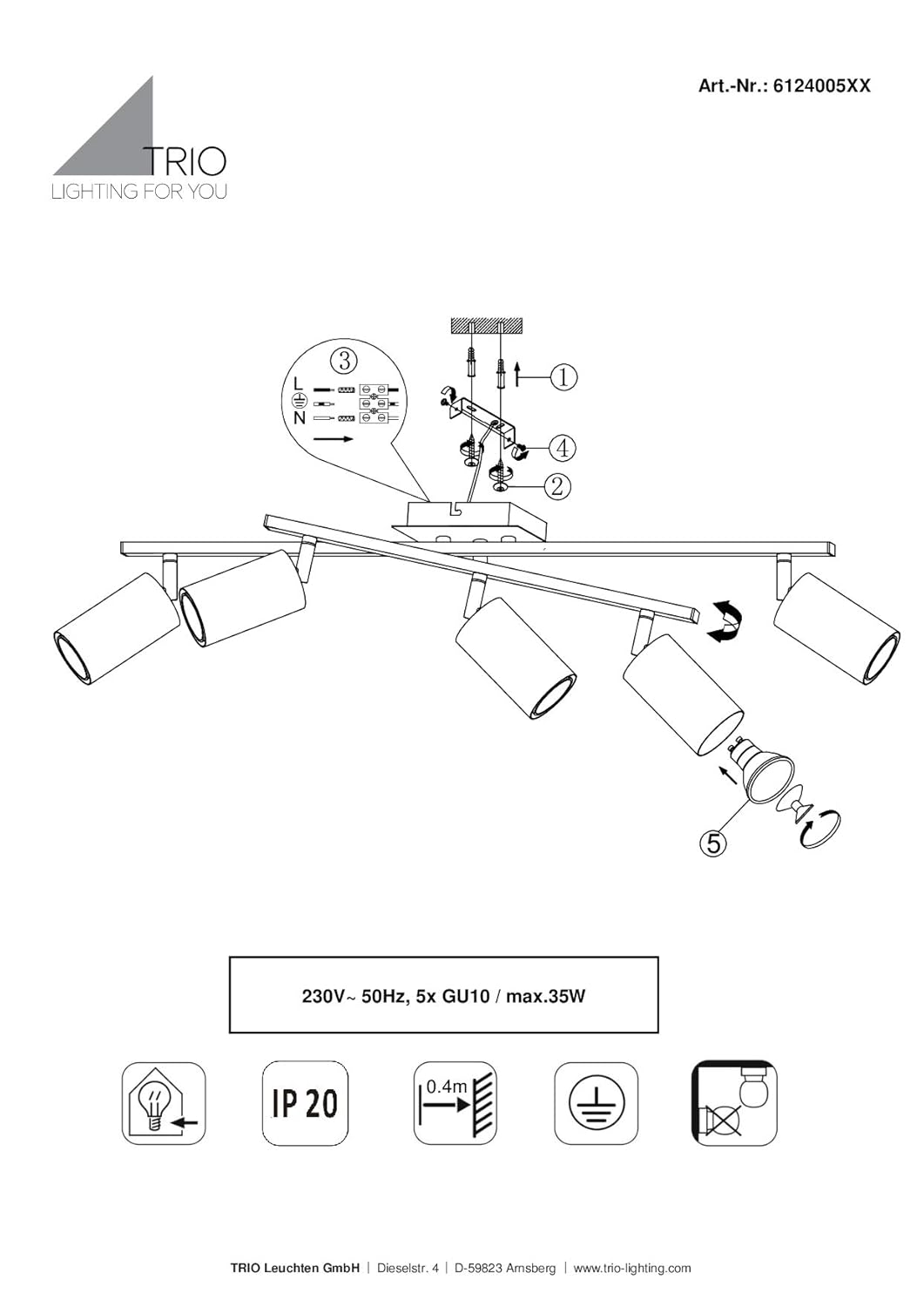 Beschreibung Perfektes und variables Licht! Die Deckenleuchte ist nicht nur praktisch in Form und Funktion, sondern vor allem eins: minimalistisch! Die einzelnen Strahler sind dezent im Design und überzeugen durch eine hochwertige Verarbeitung. Die Arme und Strahler der fünfflammigen Deckenleuchte sind frei beweglich und können je nach Wunsch individuell ausgerichtet werden. Ob in der Küche, in der Diele oder im Wohnbereich: die Lampe ist vielseitig einsetzbar und lässt sich gut mit verschiedenen Einrichtungsstilen kombinieren. In Altmessing setzt die Leuchte moderne Farbakzente, wodurch Ihr Einrichtungskonzept perfekt abrundet wird. Die Leuchtmittel sind nicht im Lieferumfang enthalten. Details Leuchte • Lampentyp: Deckenleuchte • Material: Metall• Farbe: Altmessing• bewegliche Spots• Länge x Breite x Höhe in cm: 77 x 57 x 22 • Fassungen: 5x GU10• Leuchtmittel enthalten: Nein • Leistung Leuchtmittel: max. 5x 35 Watt• Stromversorgung: 220-240V, 50-60Hz