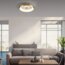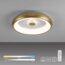 LED Deckenleuchte messing matt rund Kristalleffekte dimmbar CCT der Marke JUST LIGHT Lichtspiel durch Kristalleffekt Lichtquellen außen und innen separat steuerbar CCT-Farbtemperatursteuerung 2700-5000K Fernbedienung im Lieferumfang enthalten Höhe: 10 cm Durchmesser: 46,5 cm Farbe: messing matt Technik: LED Leistung: 29 W Spannung: 230 V Farbtemperatur: 2700 - 5000 K Lichtstrom: 1400 lm Schutzklasse II IP20 Die LED Deckenleuchte VERTIGO vereint elegantes Design, innovative Technologie und zauberhafte Lichteffekte. Das runde Design und die weiße Farbe verleihen Ihrem Raum zeitlose Eleganz. Mit der stufenlosen Dimmfunktion haben Sie die volle Kontrolle über die Helligkeit der Beleuchtung. Passen Sie das Licht ganz nach Ihren Bedürfnissen an und schaffen Sie die gewünschte Atmosphäre in Ihrem Raum. Ob helles Arbeitslicht oder gedämpftes, romantisches Ambiente - die VERTIGO Deckenleuchte erfüllt Ihre Wünsche auf Knopfdruck. Die mitgelieferte Funkfernbedienung macht die Bedienung der Leuchte besonders komfortabel. Steuern Sie die Helligkeit und die Lichtfarbe bequem aus der Ferne, ohne dass Sie sich von Ihrem Platz bewegen müssen. Machen Sie es sich gemütlich und genießen Sie die kabellose Kontrolle über Ihre Beleuchtung. Dank der integrierten Memoryfunktion merkt sich die VERTIGO Deckenleuchte Ihre individuellen Einstellungen. Selbst nach dem Ausschalten und erneuten Einschalten bleibt Ihre bevorzugte Lichtintensität und -farbe erhalten, ohne dass Sie sie erneut einstellen müssen. Mit der CCT-Farbtemperatursteuerung können Sie den Lichtton von warmweißem Licht (2700 K) bis zu neutralweißem Licht (5000 K) individuell einstellen. Schaffen Sie eine gemütliche Atmosphäre oder erhellen Sie Ihren Raum mit natürlichem Tageslicht - die Wahl liegt ganz bei Ihnen. Ein besonderes Highlight ist der wunderschöne Kristalleffekt in der Mitte der Leuchte. Dieser sorgt für ein faszinierendes Lichtspiel. Lassen Sie sich von den funkelnden Reflexionen verzaubern und genießen Sie das besondere Flair, das die VERTIGO Ihnen bietet.
