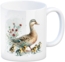 Starten Sie Ihren Tag mit einem Lächeln! Unser Ente mit Küken Kaffeebecher zeigt eine entzückende Ente, die ihre winzigen gelben Küken über eine blühende Wiese führt. Es ist wie ein kleiner Naturfilm beim Frühstück!