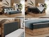 Boxspringbett mit dekorativem Kopfteil und zwei Bettkästen, Eiche Holzrahmen - ALBERO 4 - 200x200 cm - Dunkelgrau Stoff - H3